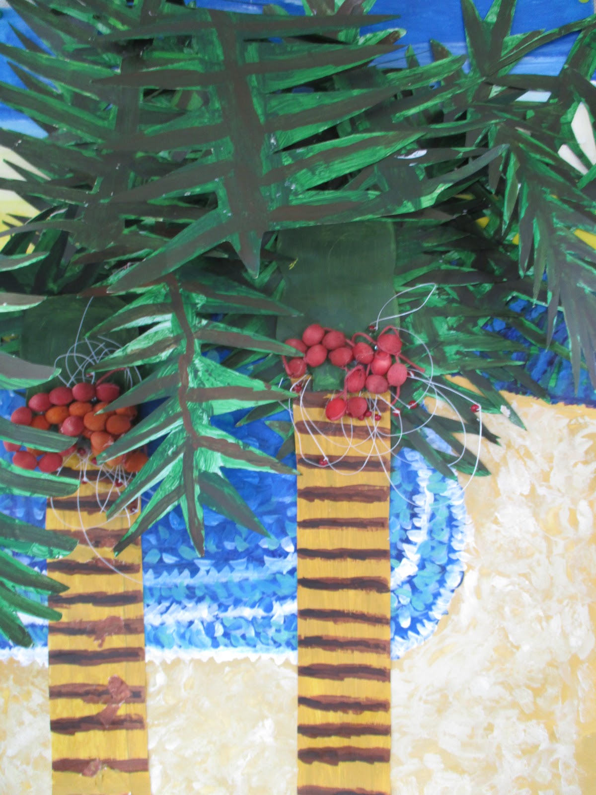 Inspired by New Zealand landscape scenes of beaches the Ranfurly artists have created the beach scenes and added their own native plants to put in the foreground of their piece.